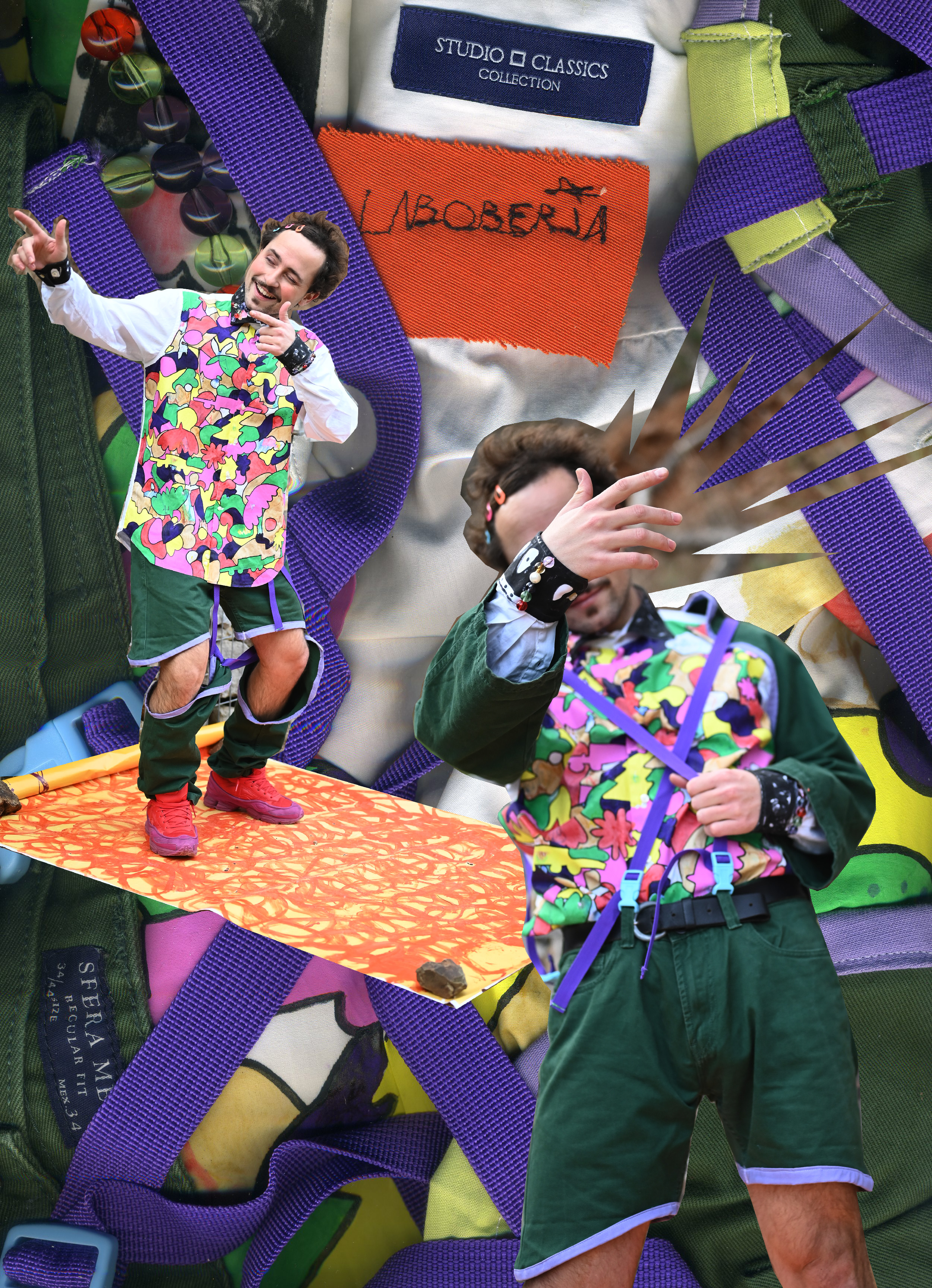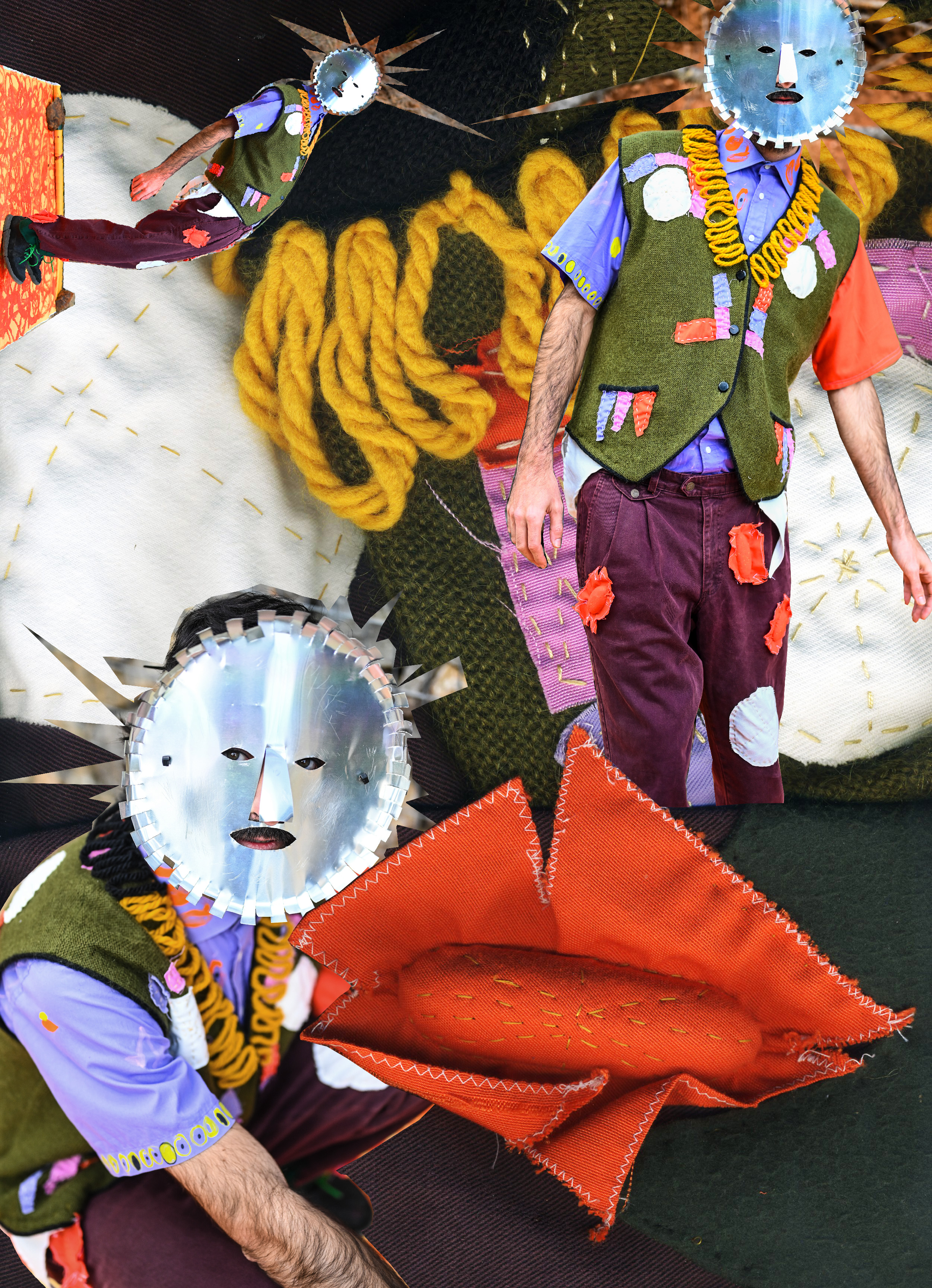 Anna Floto y La Bobería entretejen sus prácticas como un diálogo entre la alquimia, lo social, lo onírico y lo lúdico. Mientras Anna construye puentes entre los ecosistemas humanos y naturales a través del dibujo y la pintura, hace referencia a las ornamentaciones de la ciudad que hoy decide habitar, La Bobería transforma el “desecho” en una experimentación lúdica, otorgando nuevas vidas a lo descartado. En su búsqueda de generar territorios que podrían ser parte de una visión satelital o microscópica y donde capas y capas de materiales diversos dan alusión a placas tectónicas, atmósferas plastificadas nos encontramos con un lenguaje que desprenden recorridos que se cruzan en el acto de habitar lo colectivo: el encuentro con el otre, la experimentación compartida y la búsqueda de conexiones que reconfiguran lo que nos rodea.