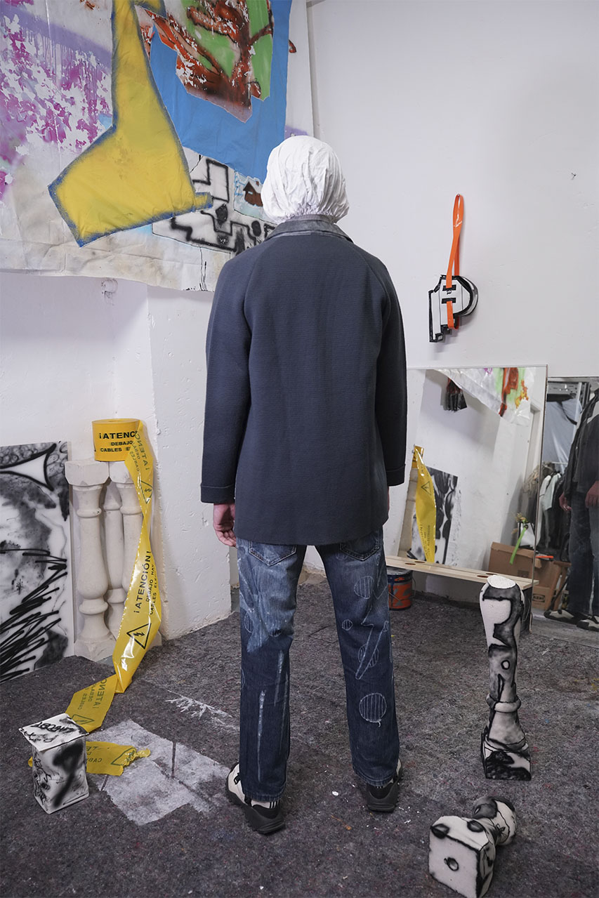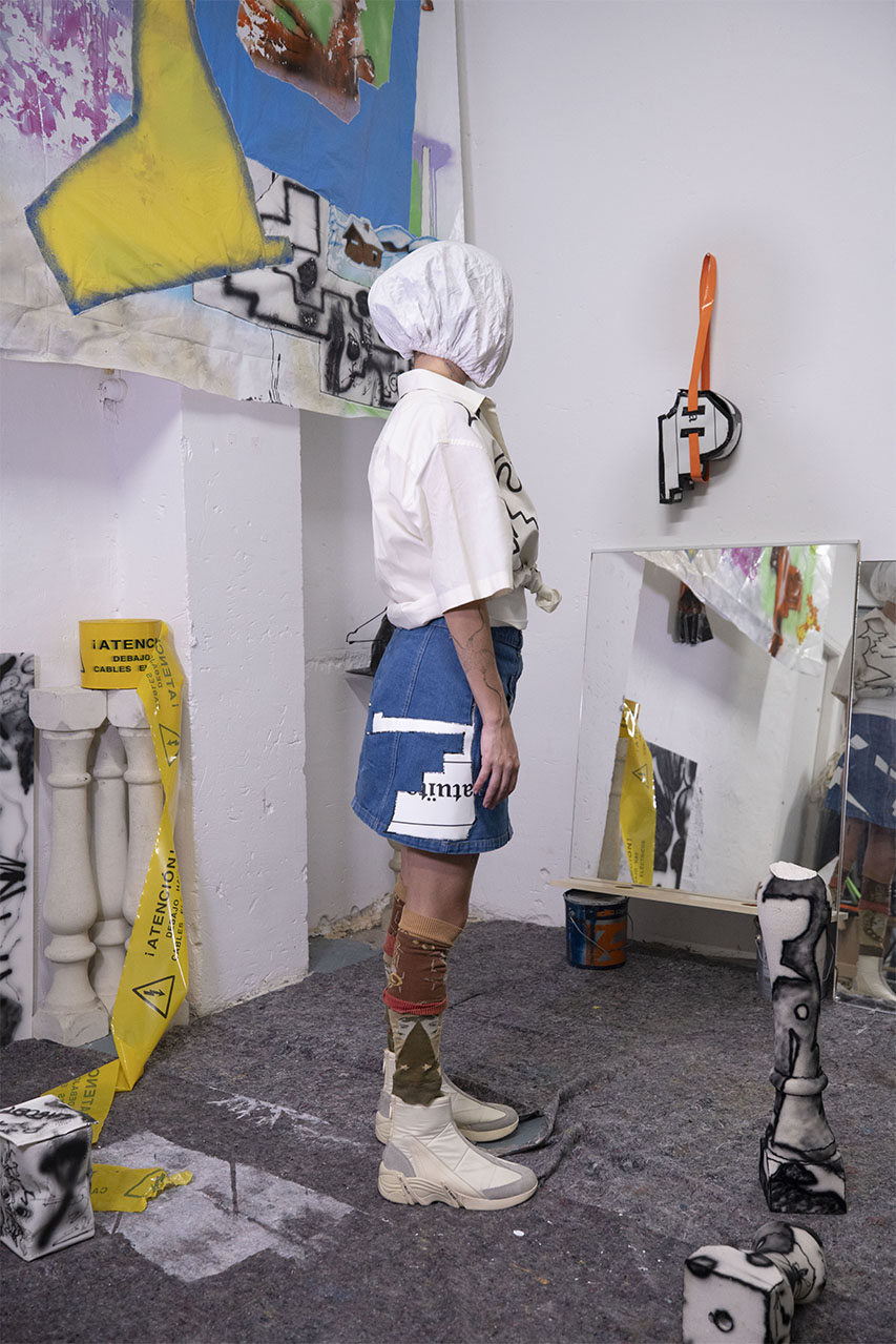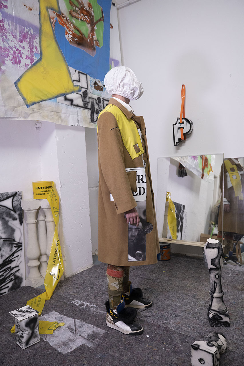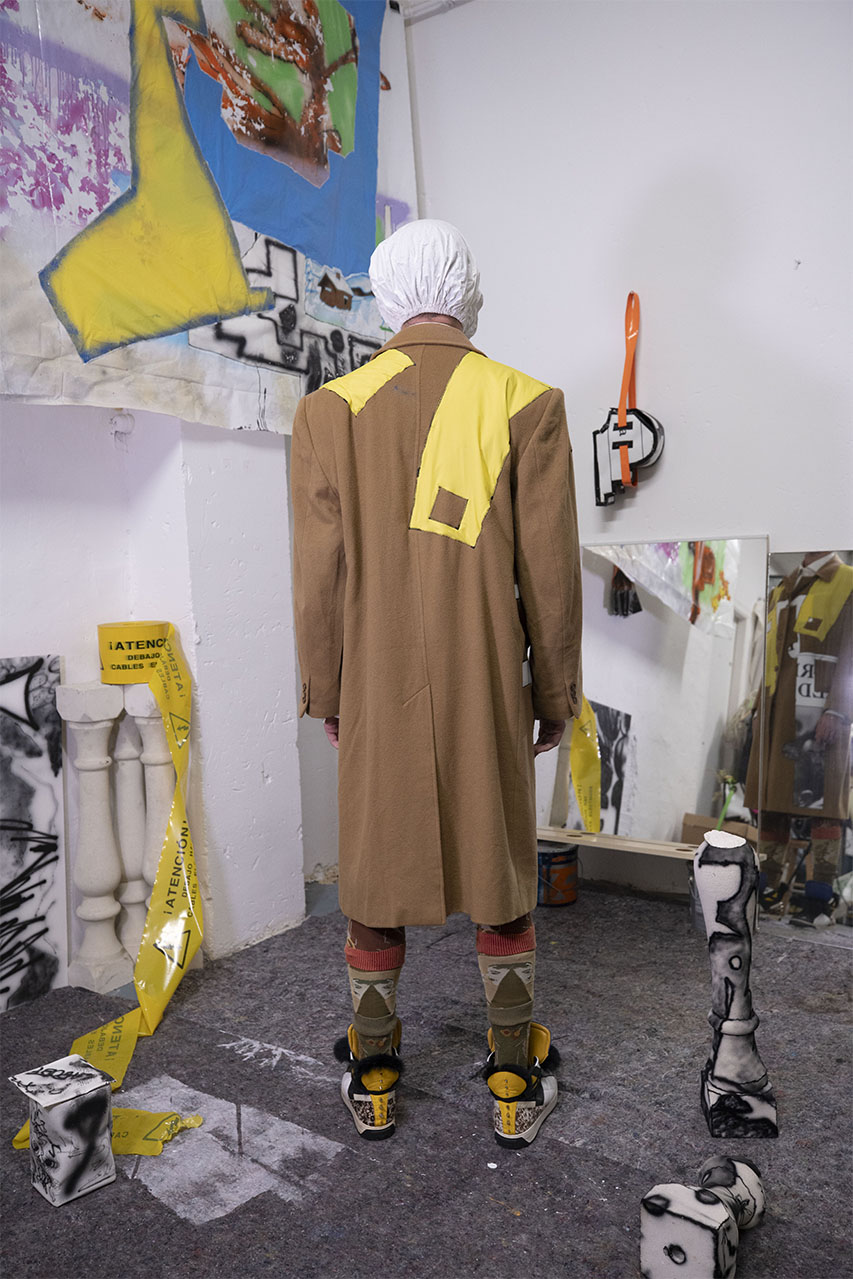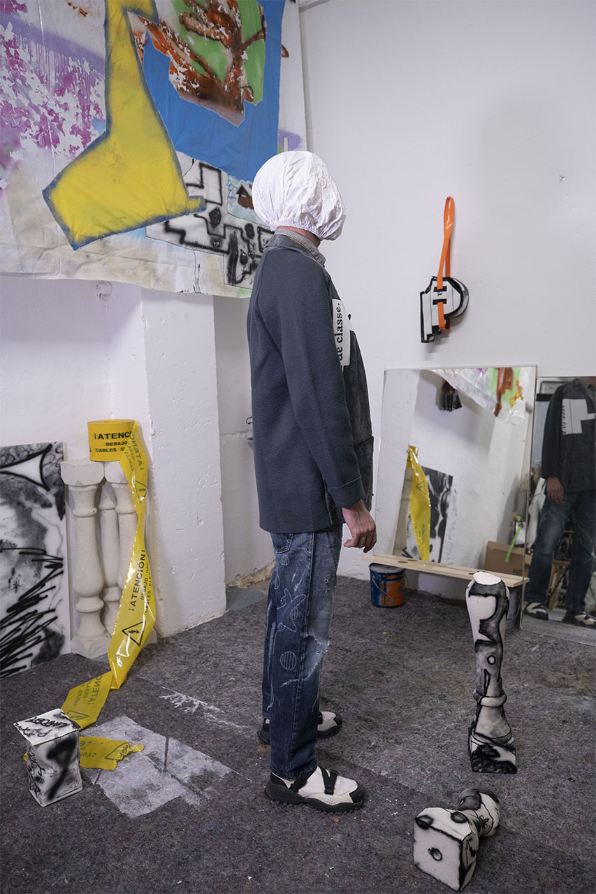 Las formas restantes de realizar cortes generan un negativo igual de sugerente que la pieza final, “objets trouvés” nacen de los descartes de colecciones pasadas. Las grandes dimensiones de estos elementos los vuelve impactantes al combinarse con las prendas, tanto por color como por la composición en la misma.