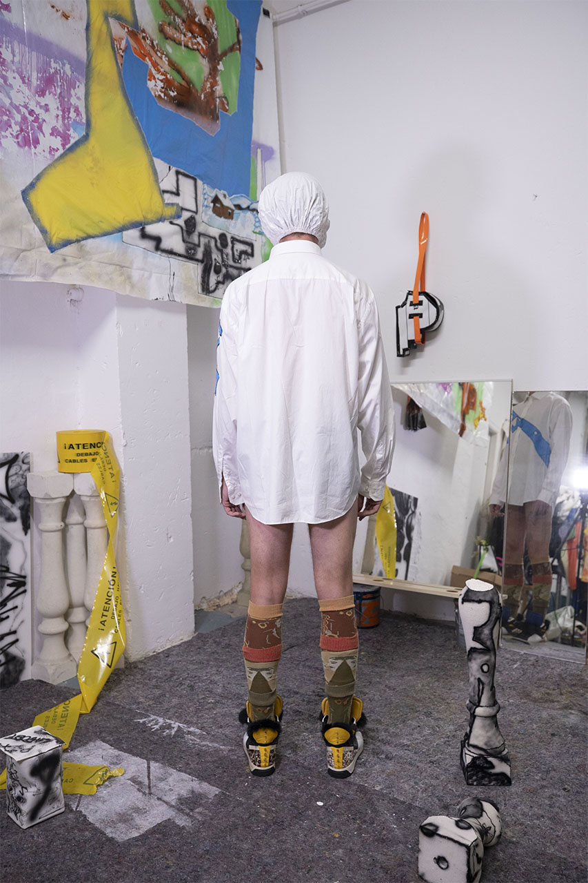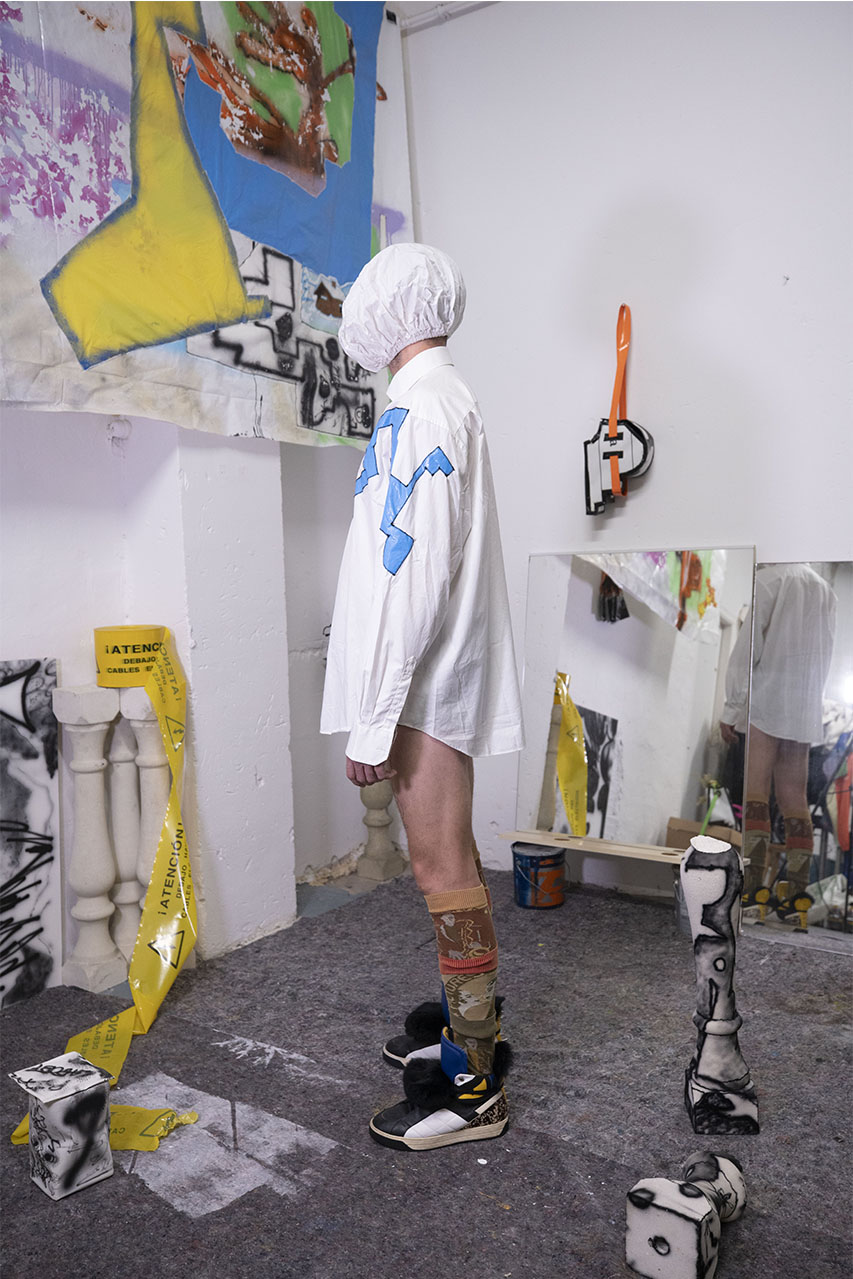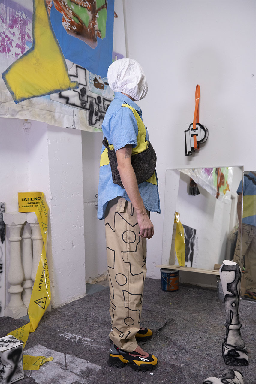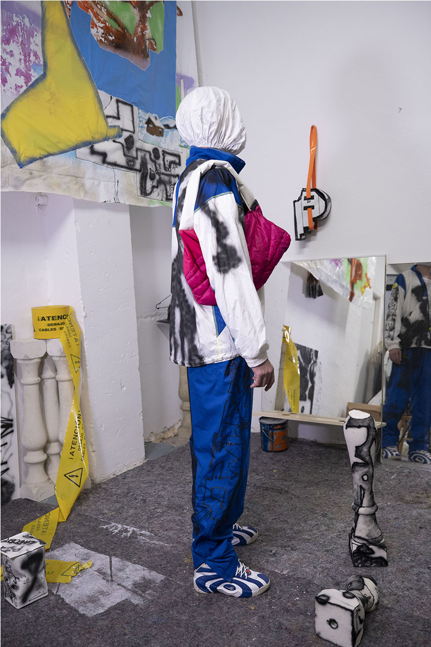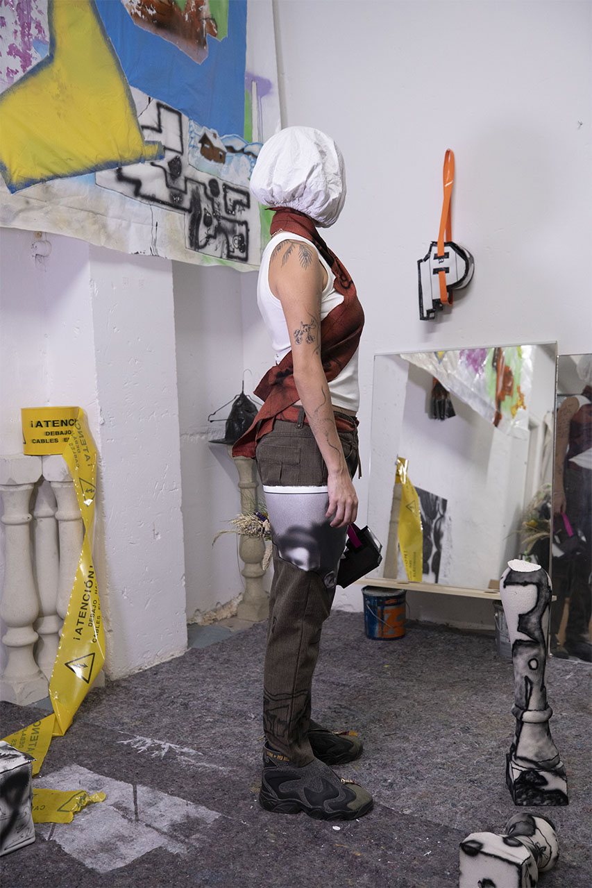 Las formas restantes de realizar cortes generan un negativo igual de sugerente que la pieza final, “objets trouvés” nacen de los descartes de colecciones pasadas. Las grandes dimensiones de estos elementos los vuelve impactantes al combinarse con las prendas, tanto por color como por la composición en la misma.