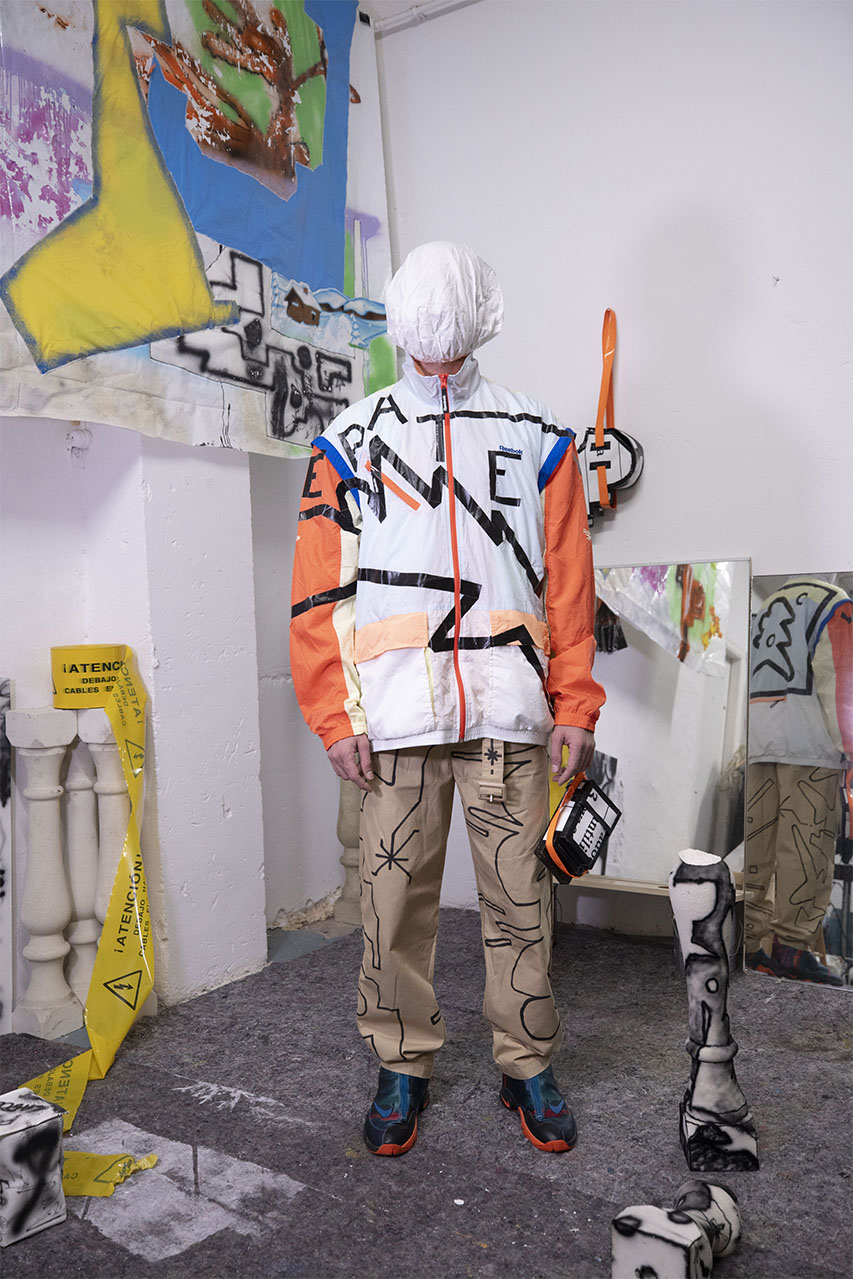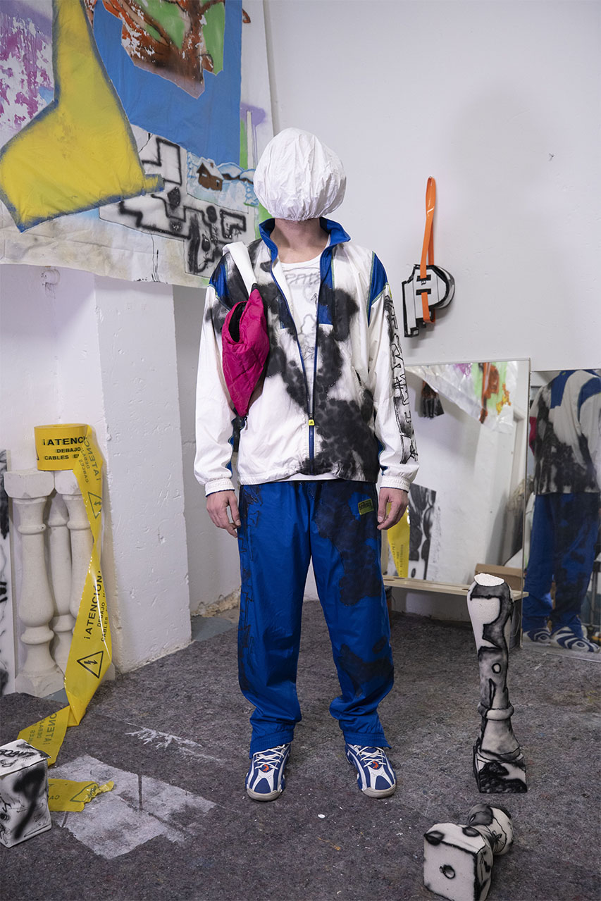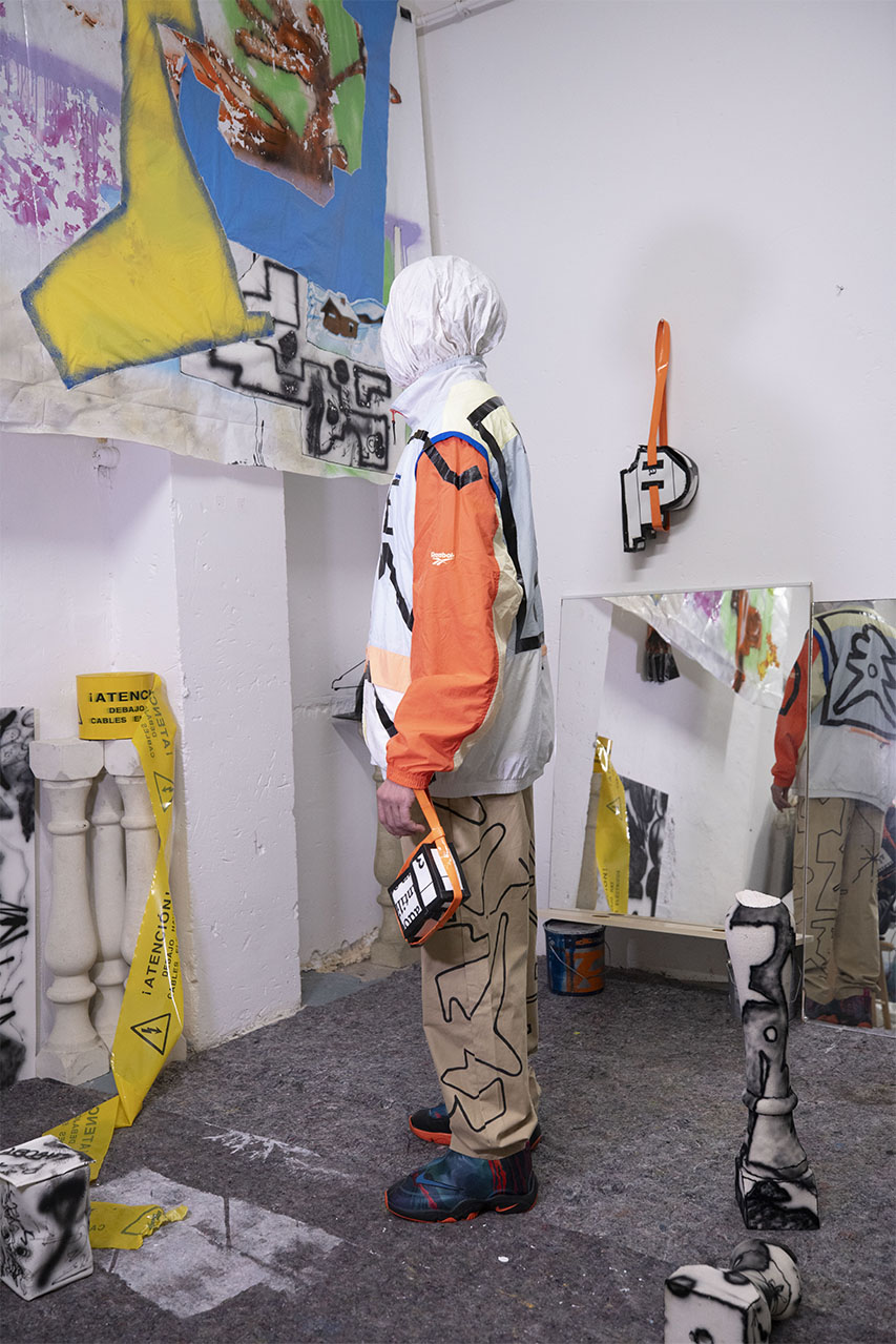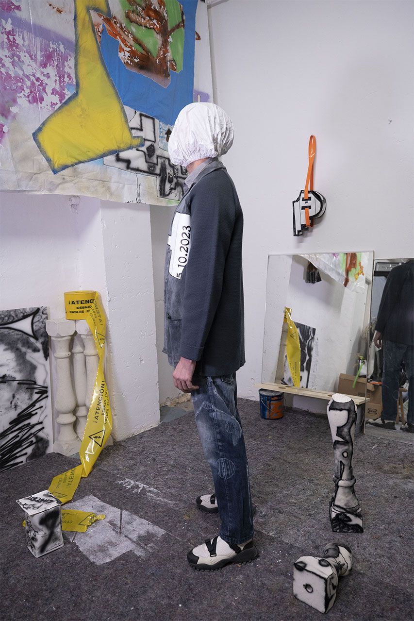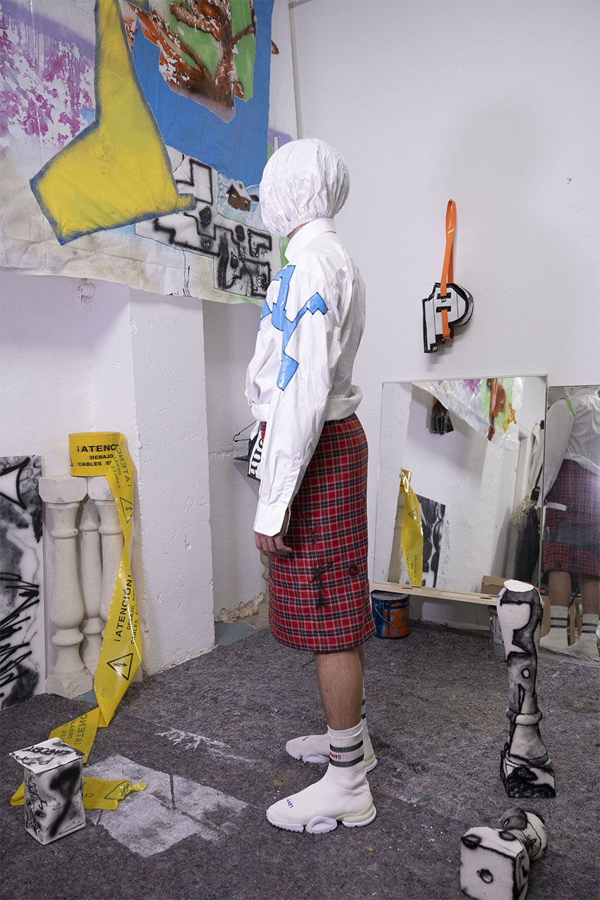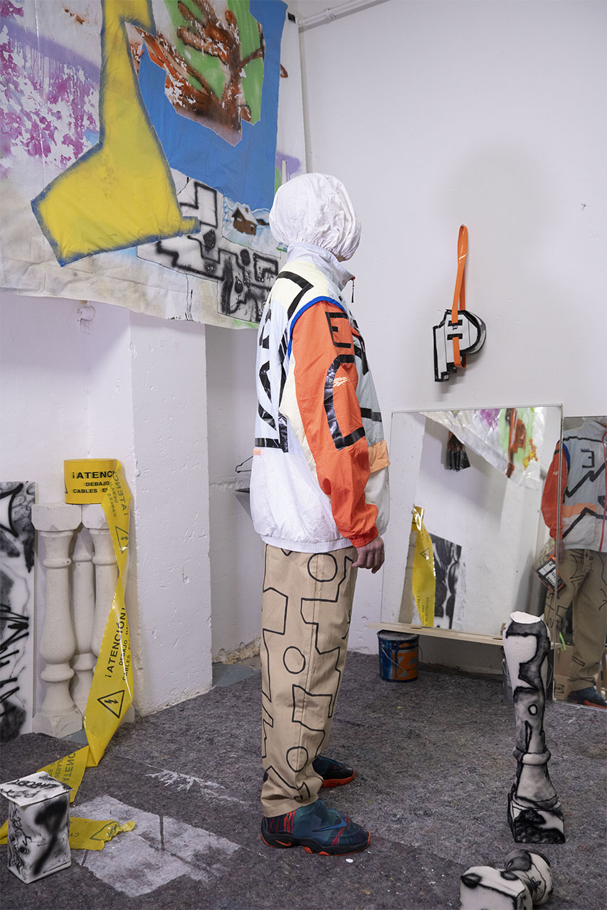 Las formas restantes de realizar cortes generan un negativo igual de sugerente que la pieza final, “objets trouvés” nacen de los descartes de colecciones pasadas. Las grandes dimensiones de estos elementos los vuelve impactantes al combinarse con las prendas, tanto por color como por la composición en la misma.