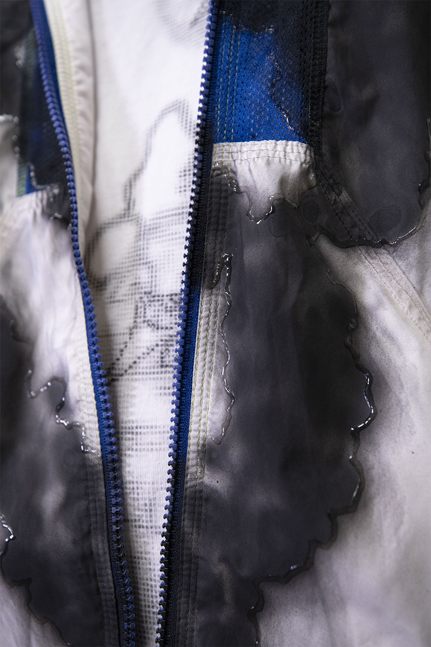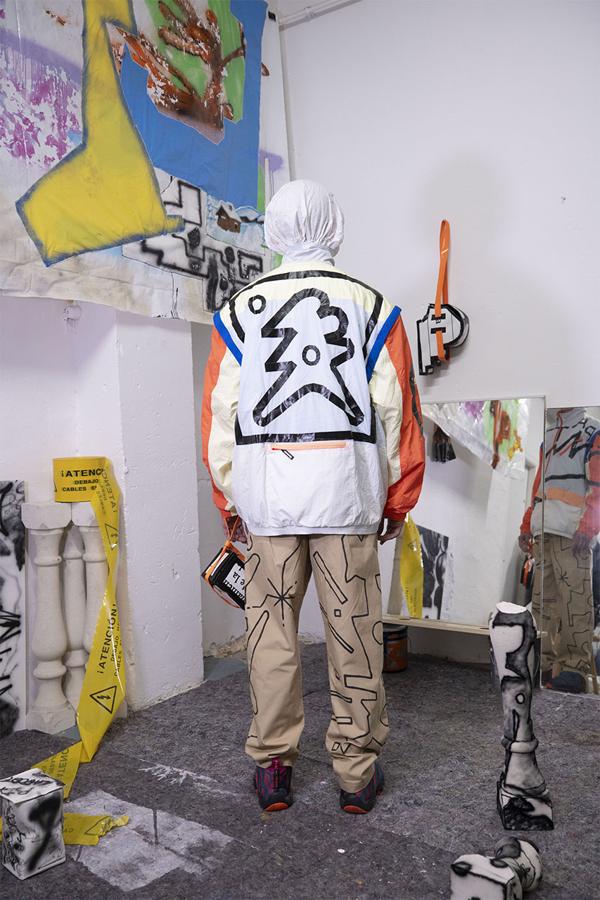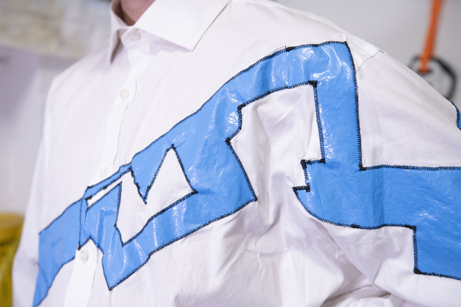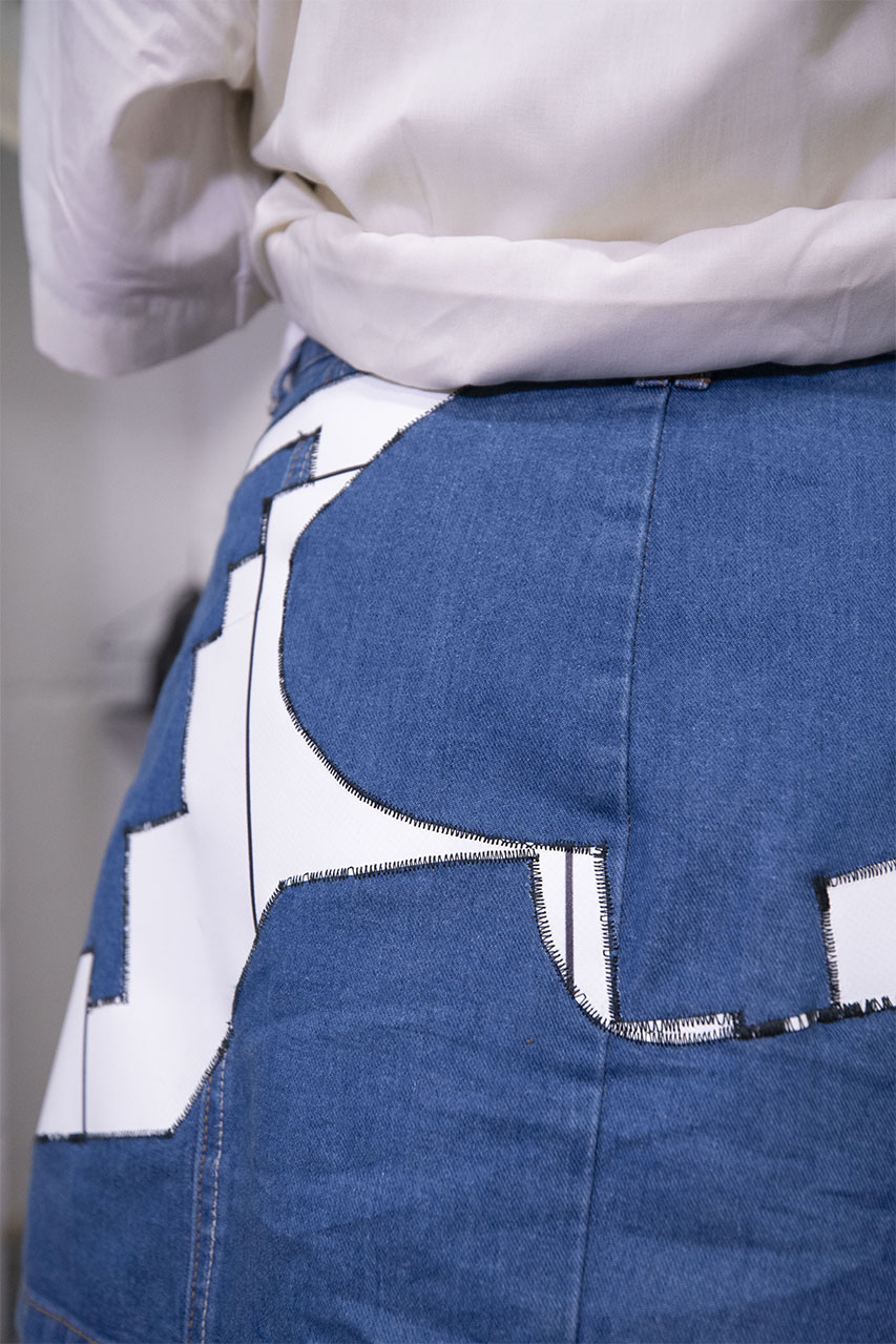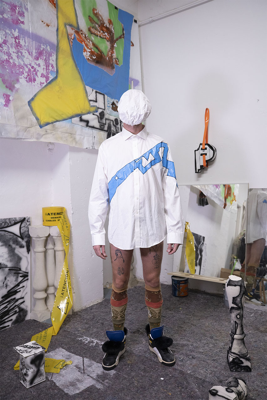 Las formas restantes de realizar cortes generan un negativo igual de sugerente que la pieza final, “objets trouvés” nacen de los descartes de colecciones pasadas. Las grandes dimensiones de estos elementos los vuelve impactantes al combinarse con las prendas, tanto por color como por la composición en la misma.